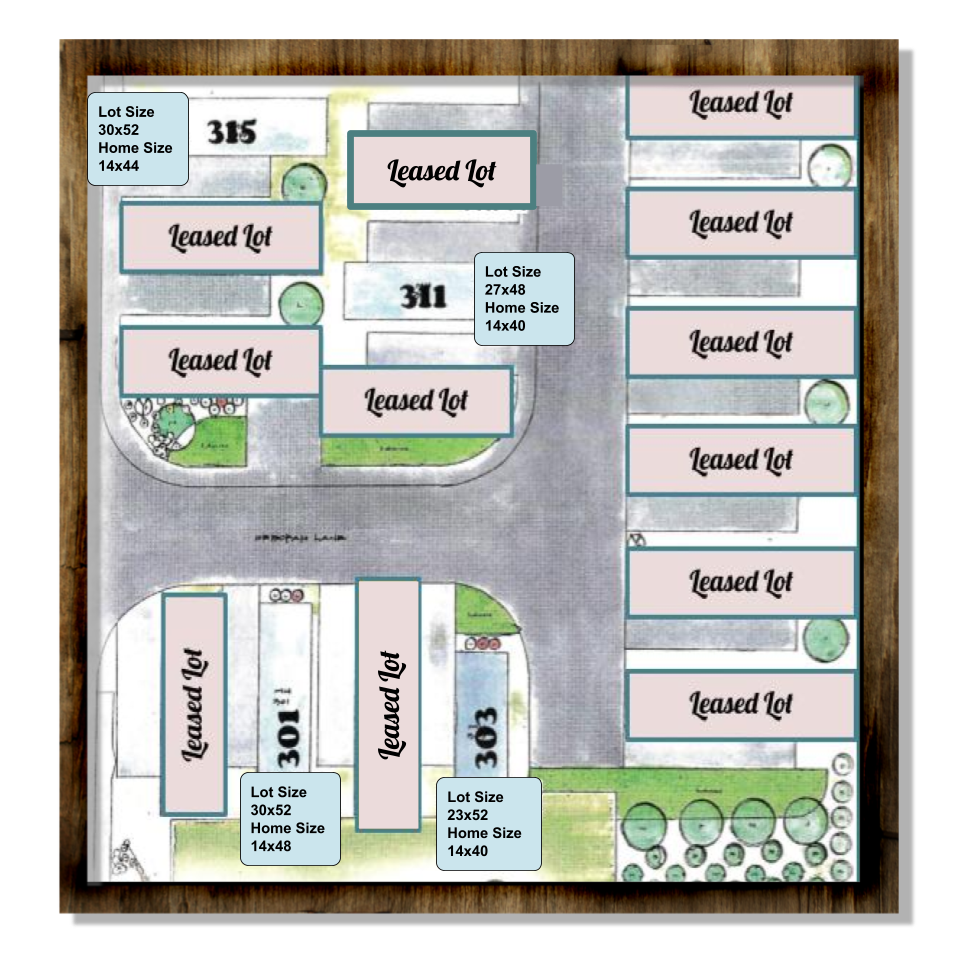 Time to move into home ownership! We have two lots available that can fit a 14×52 size home that are 2-bedroom 1 bathroom. Look at the possibilities. Perfect for retired couples looking to downsize or first-time home buyers.